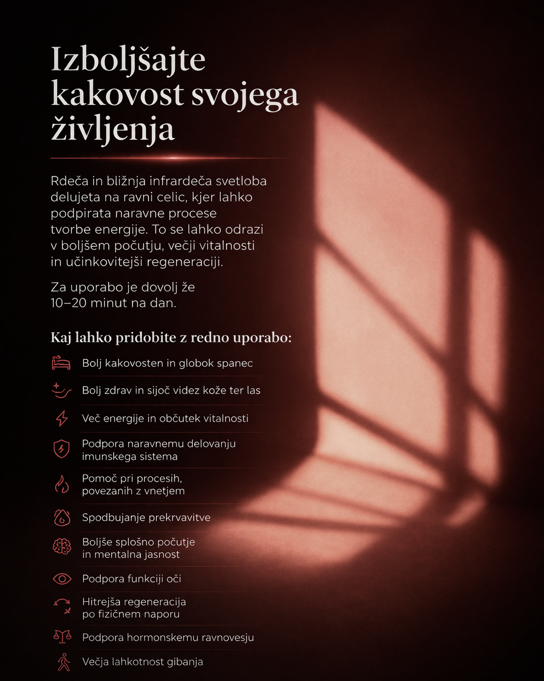 Usmerjena rdeča svetloba prodre v kožo in aktivira celične procese.
